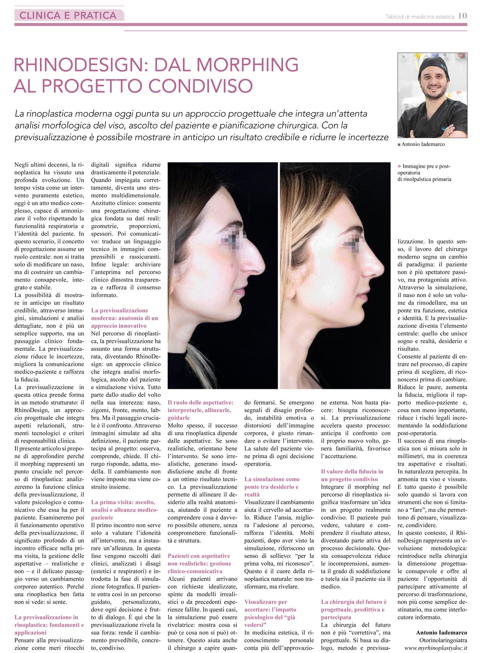 Il Dott. Iademarco ha partecipato a numerosi congressi nazionali e internazionali in ambito otorinolaringoiatrico e di medicina estetica, perfezionandosi ulteriormente con corsi avanzati di dissezione anatomica e tecniche di rinoplastica. È autore di pubblicazioni scientifiche nel campo della chirurgia nasale e ha collaborato con esperti di settore su tematiche di rilievo.